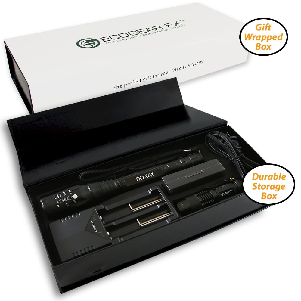 Constructed of aircraft grade aluminum alloy, the TK120X LED tactical flashlight with holster gives you the durability needed for outdoor activities like camping and hunting. But it’s also used by many security pros due to its Strobe Light function.