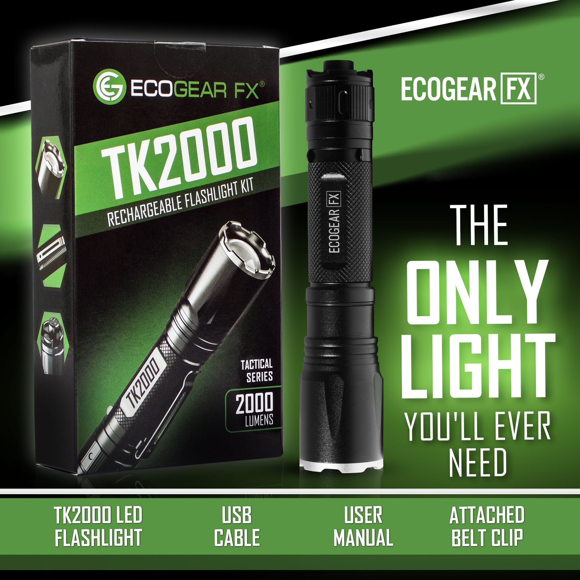 • RUGGED DESIGN: Durability that other flashlights do not offer, the TK2000 is constructed of durable aircraft-grade aluminum with a hardened anodized finish. Offering a professional grade construction that is lightweight, durable and withstands the harsh outdoor elements such as rain, snow, dust and dirt. Ideal for your EDC gear, hurricane preparedness emergencies and outdoor survival kits.